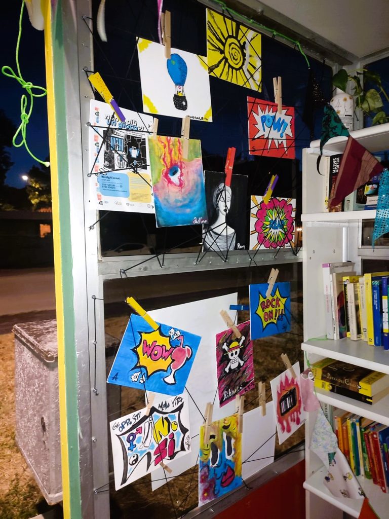 Al termine dei due laboratori, le bibliocabine sono state inaugurate con 2 eventi, uno di pittura a tema pop art, in collaborazione con Tele bianche, e uno di scrittura di Haiku, in collaborazione con Cuccaroni Valerio. Le opere al termine sono state lasciate nelle rispettive cabine.