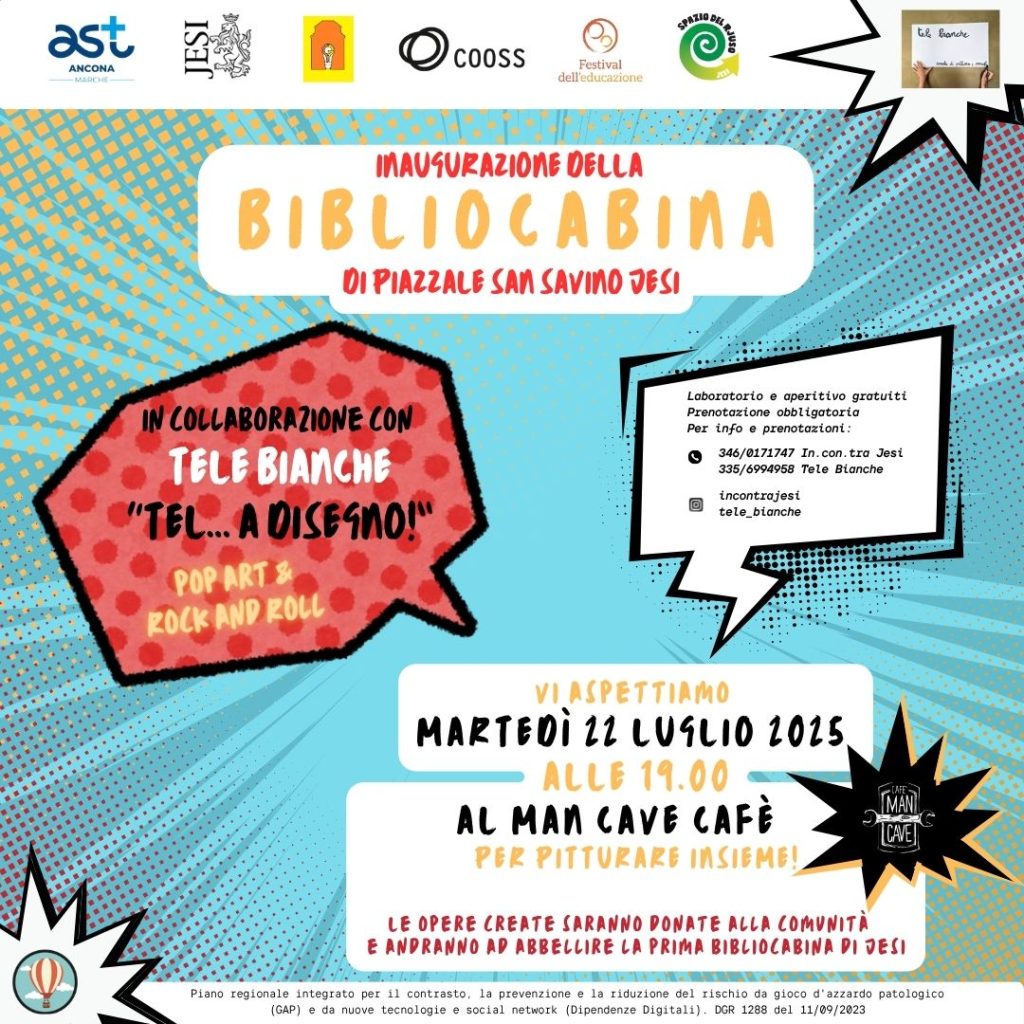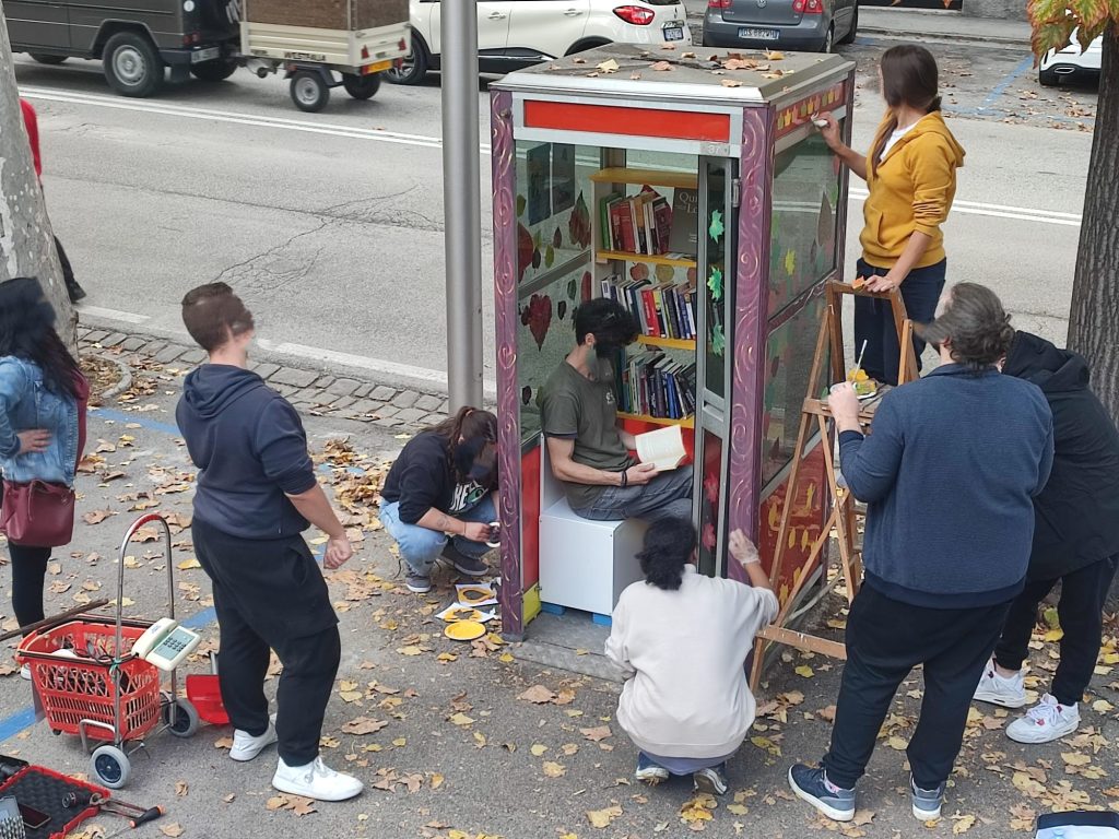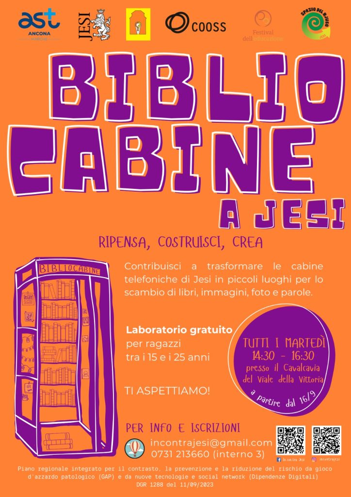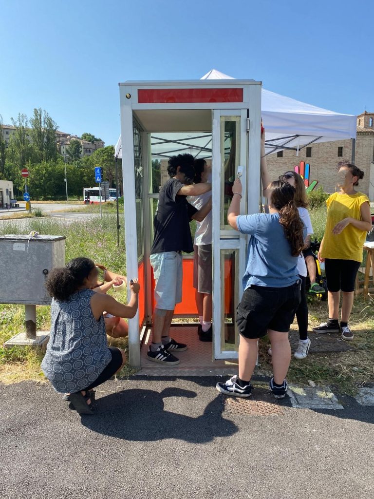Tra giugno e ottobre 2025 sono stati effettuati a Jesi due laboratori per adolescenti finalizzati alla riqualifica di vecchie cabine telefoniche, che sono state trasformate in bibliocabine, ovvero un luoghi dove poter prendere e lasciare libri. Per attrezzare le vecchie cabine al nuovo uso, sono stati utilizzati materiali di riciclo e molta fantasia. In primo luogo è stato osservato l’ambiente circostante, poi ciascun/ciascuna ragazzo/ragazza ha ideato delle proposte e infine il gruppo ha deciso su come procedere nell’allestimento.