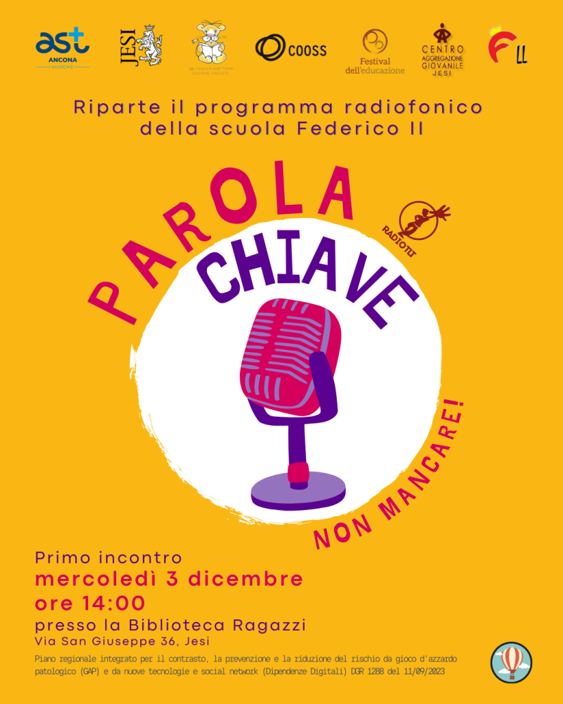 L’azione è stata possibile grazie ai fondi del Piano regionale integrato per il contrasto, la prevenzione e la riduzione del rischio da gioco d’azzardo patologico (GAP) e da nuove tecnologie e social network (dipendenze digitali) Dgr 1288 del 11/09/2023 e grazie al Comune di Jesi.
